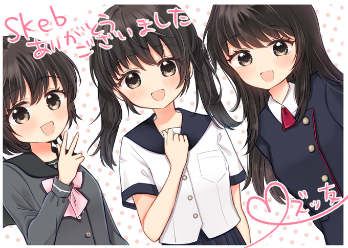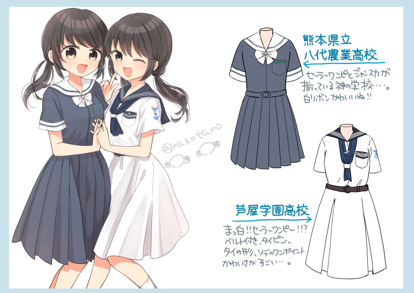 【再投稿】新刊にくっつけてたペーパーの原稿ですが新刊が無事完売したのでこちらでも公開しておきます! 推しのセーラーワンピを描きました 今回は珍しく校名が入ったままの投稿です~ #ゆるっと制服ちゃん