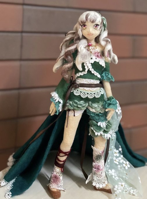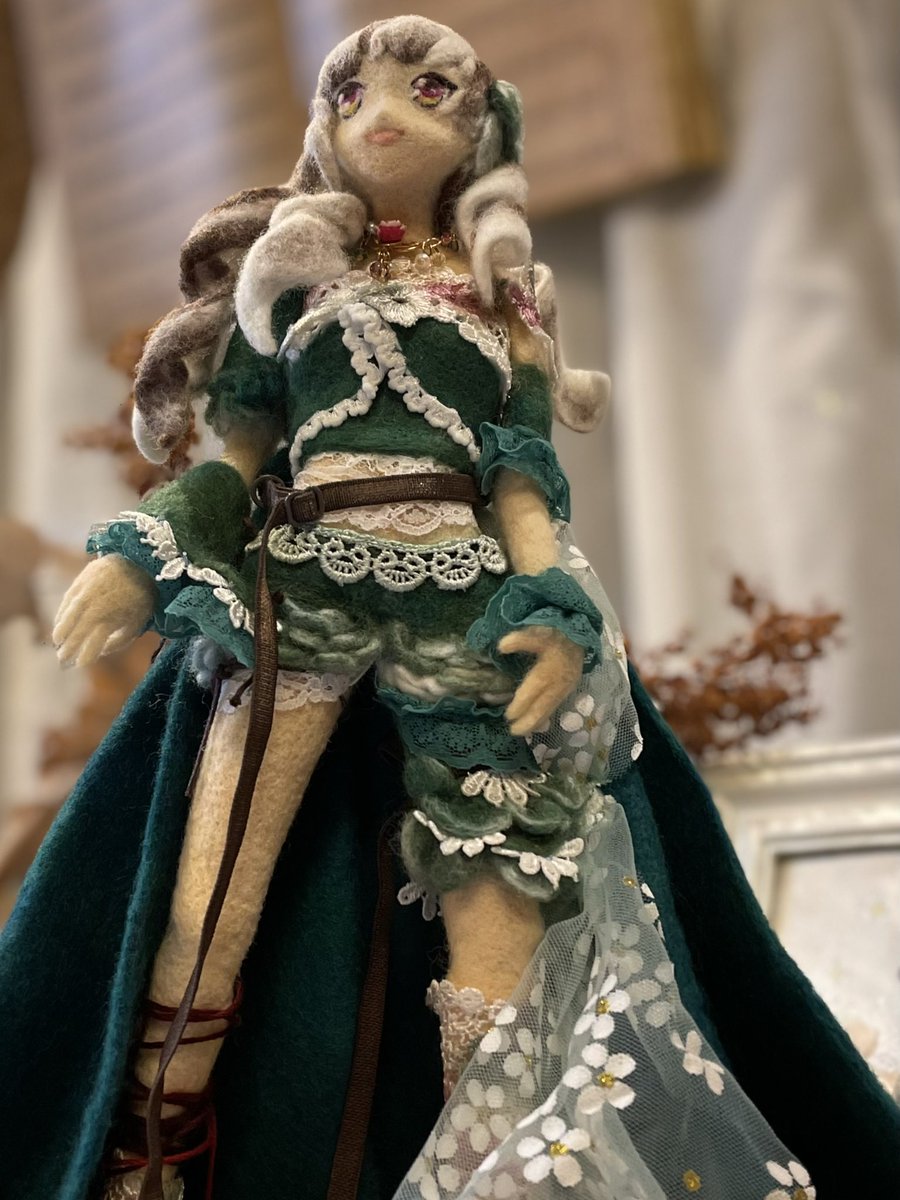 30 84 森のアリス🍃できましたー 奇跡的に巻きスカートの重みで自立に成功\( ˆoˆ )/ 細かく改善点もありますが とりあえず完成です(*^^*) 🌲🌲🍃 #羊毛フェルト #ニードルフェルト 21/06/27 20:33