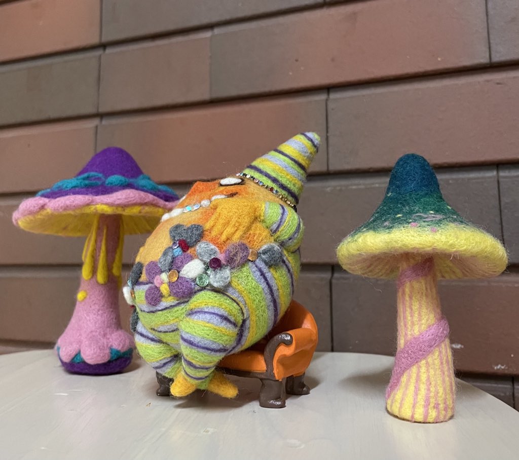 ここ数日の朝活 キノコできました🍄 (けっこぅおおきい) 仕事行ってきます💦 #羊毛フェルト #キノコ