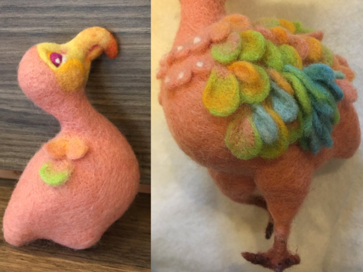22 91 アリスの原作と映画がごちゃ混ぜになって^^;剣を持たない剣士みたいなもの(ネズミ)出来ました そしてドードーを作るつもりが💦 おデブなフラミンゴに(笑) マイノリティでもいいじゃな~い また夜に作り進めます #羊毛フェルト #ニードルフェルト twitter.com/rakuda37/sta… 21/03/18 09:00