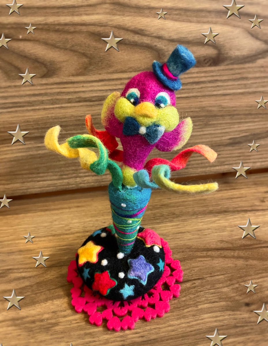 久しぶりに1日休みだったので 作ってました♪鳥のクラッカー🎉 マジシャンバージョンです そして力尽きて眠い゚゚\(´O`/)°゜゚ …… #羊毛フェルト