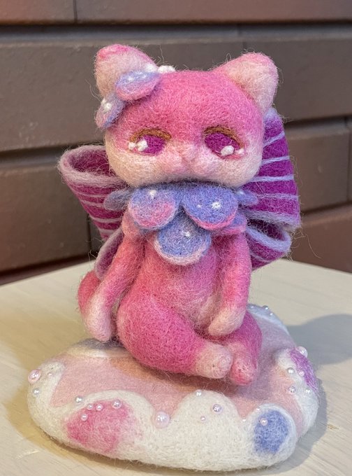 気づいたら朝でした (ただコタツで爆睡してた人w) とりあえずできました♪ #羊毛フェルト #ニードルフェルト twitter.com/rakuda37/sta…