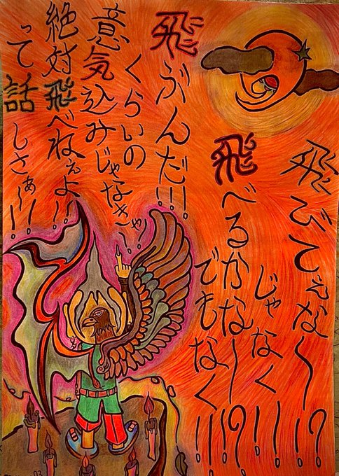 2 21 飛びてぇな〜!? じゃなく!! 飛べるかな〜!? でもなく!! 飛ぶんだ!!! くらいの意気込みじゃなきゃ!! 絶対飛べねぇよ!! って話しさぁ〜!! by.rakuen73 #不安障害 #障害者アート #詩 #絵 #イラスト 22/10/12 18:59