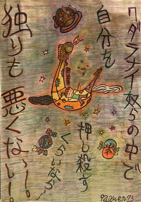 2 18 クダラナイ奴らの中で 自分を押し殺すくらいなら!! 独りも 悪くない!! by.rakuen73 #不安障害 #障害者アート #絵 #イラスト #詩 22/10/06 02:40