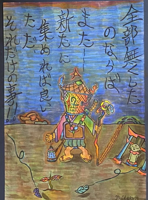 全部無くしたのならば また・・・・ 新たに集めれば良い ただ、 それだけの事!! by.rakuen73 #不安障害 #障害者アート #絵 #イラスト #詩