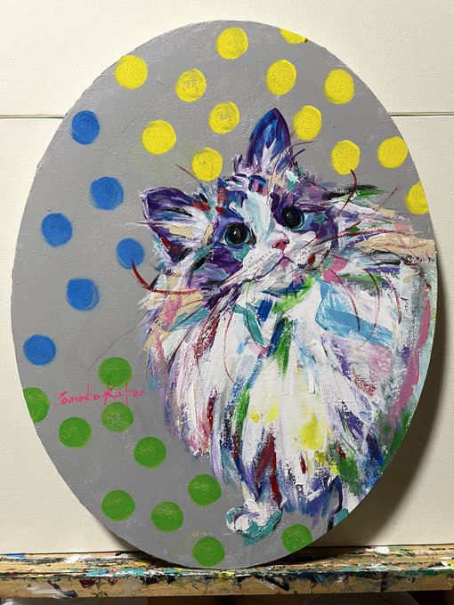 2 8 実は #丸 #キャンバス でした。 #てしま旅館 での #加藤智子 #個展 がこの #2月 にあります。 お近くの方 #猫好き な方、どうぞよろしくお願い致します🙇♀️ 諸事情を抱えておりまして、会場にいるかいないか断言は出来ませんが…お待ちしております。 #猫 #猫の絵 #動物の絵 23/02/08 08:48
