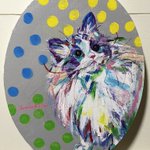 実は #丸 #キャンバス でした。 #てしま旅館 での #加藤智子 #個展 がこの #2月 にあります。 お近くの方 #猫好き な方、どうぞよろしくお願い致します🙇♀️ 諸事情を抱えておりまして、会場にいるかいないか断言は出来ませんが…お待ちしております。 #猫 #猫の絵 #動物の絵