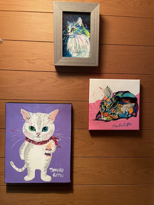 2 8 明日 #てしま旅館 さんに持って行く追加作品です。 いよいよ、明日・明後日 で終わります。ぜひお越し下さい🙇♀️ #山口県 #阿知須 #猫庭 #加藤智子 #個展 #猫の絵 23/02/24 15:35