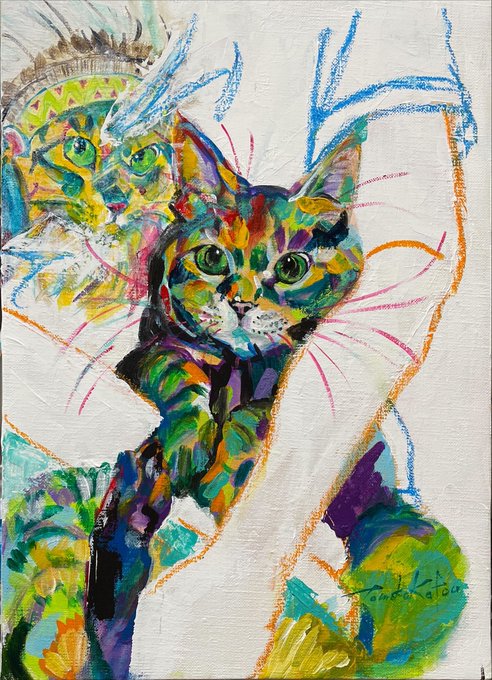 3 8 恋愛系映画ポスター から 任侠系映画ポスター になってしまったような💦 たまにはこういうのもイイでしょ👍 こちらかなり大きな作品です。 #てしま旅館 #猫庭 #山口県 #山口市 #阿知須 #加藤智子 #個展 #保護猫 #猫 #ねこすたぐらむ #猫の絵 23/02/08 00:11