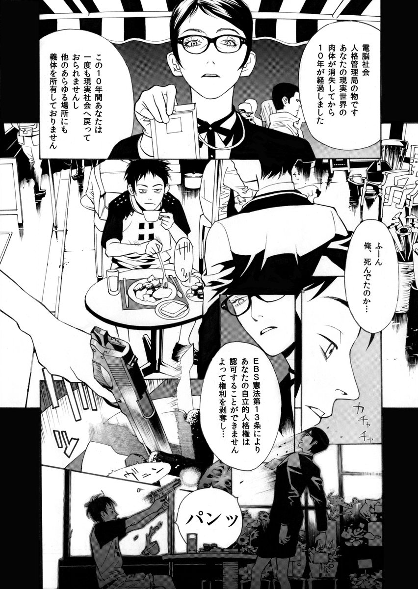 「マーケット13区」10年以上前に描いた漫画 6ページだけで続きはないです ニューロマンサー的なものを描いてみたかった、というか今でもギブスンとか伊藤計劃的なものは描きたい欲はある