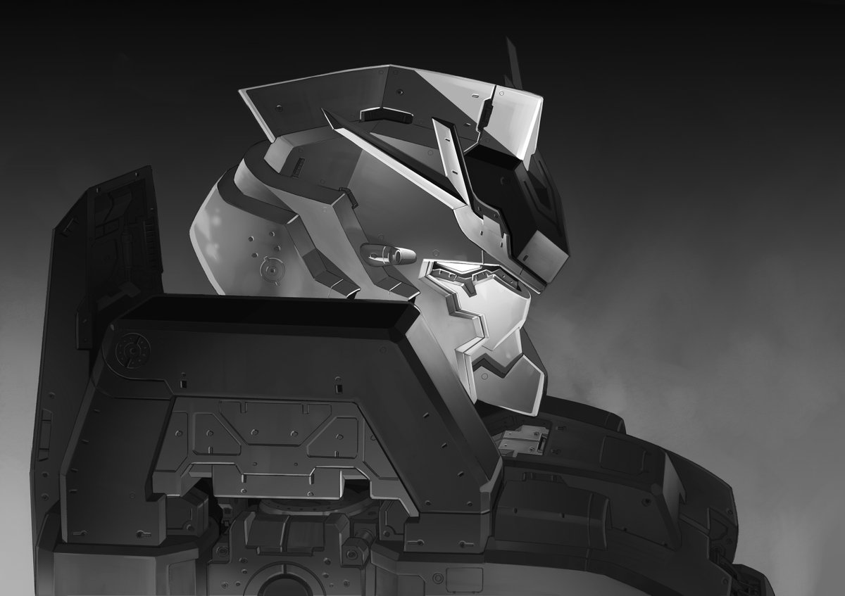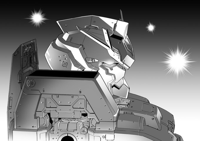 183 1132 以前描いたフルアーマー・ガンダム・ヘッドをライティングを変えて調整 ここから彩色するつもり #サンダーボルト 23/04/14 21:00