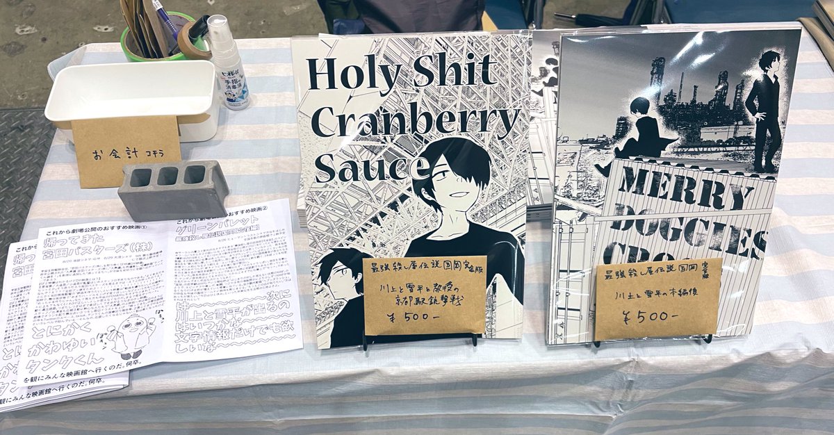 5 13 #C100 設営完了〜 【東2T02a】にて 国岡本2冊とおすすめ映画ペーパー(帰ってきた宮田バスターズ/グリーンバレット)置いてます。 22/08/13 09:54