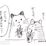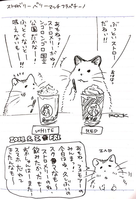 #ハムスター #イラスト 【過去絵】おほもっチュ!!今日の食べ食べは~~ふたりの大好きなスタマ!!おいしかったストロベリーベリーマッチフラペチーノ!!白黒の絵をあげても塗ってもらえる可能性~♪透過してないし、面倒だろうけども( ˘ω˘ )【再掲】