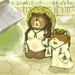 7 56 #ハムスター #イラスト 【過去絵】今日はこれっ!!タマタマ仲間のタヌキさんと酒屋の杉玉を見に行くハムちゃんです✨【再掲】 22/07/07 15:33