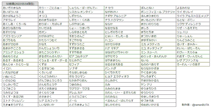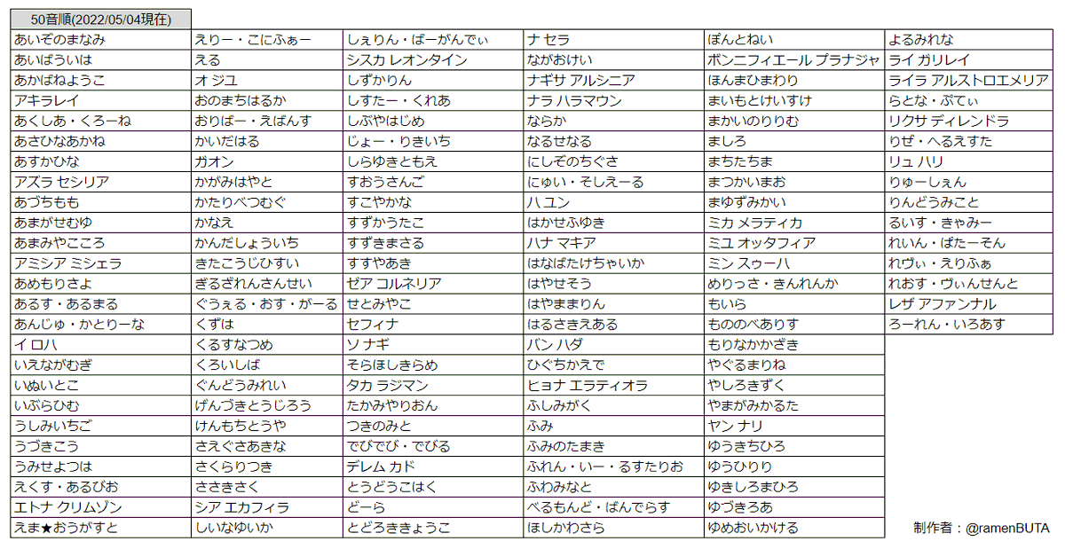 #にじさんじ五十音順に描いたら童田明治の時には画力上がってる説 #にじさんじ五十音順に描いたらローレン・イロアスの時には画力上がってる説 にじさんじ公式サイトのライバー一覧がバグってるけどグウェルさんの企画を遂行したい!という方向けに簡易的に作成しました。 ご自由にどうぞ。
