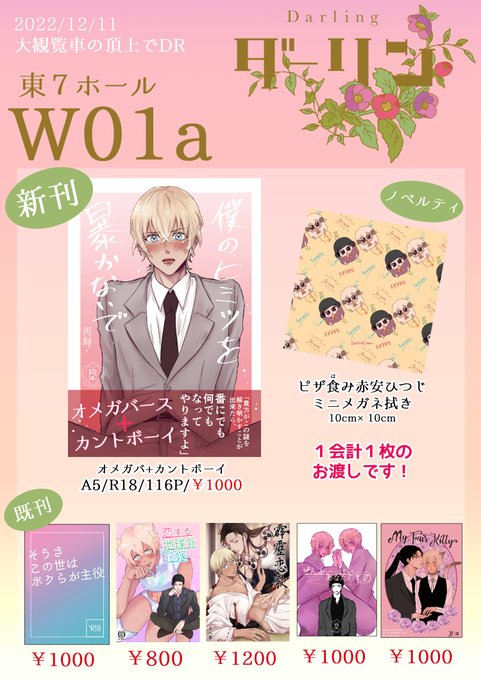 【12/11大観覧車】お品書き【赤安新刊】 | ラム #pixiv pixiv.net/artworks/10341… お品書きとノベルッチのメガネ拭き実物写真です🍕 よろしくお願いいたします!