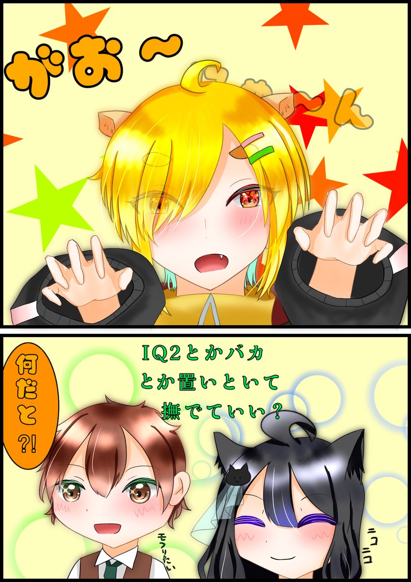 3 27 #IQ2キラスト モフるキキョウさん、モフられるキラさん、乗っかるいゆさんの図です 22/09/25 00:41