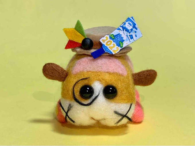 82 478 羽子板ポテトも完成!帽子が難しかった。顔の墨は羊毛ねじって張り付けただけ。 #モルカー #ぷいパズ #モルカーファンアート 22/01/02 18:56