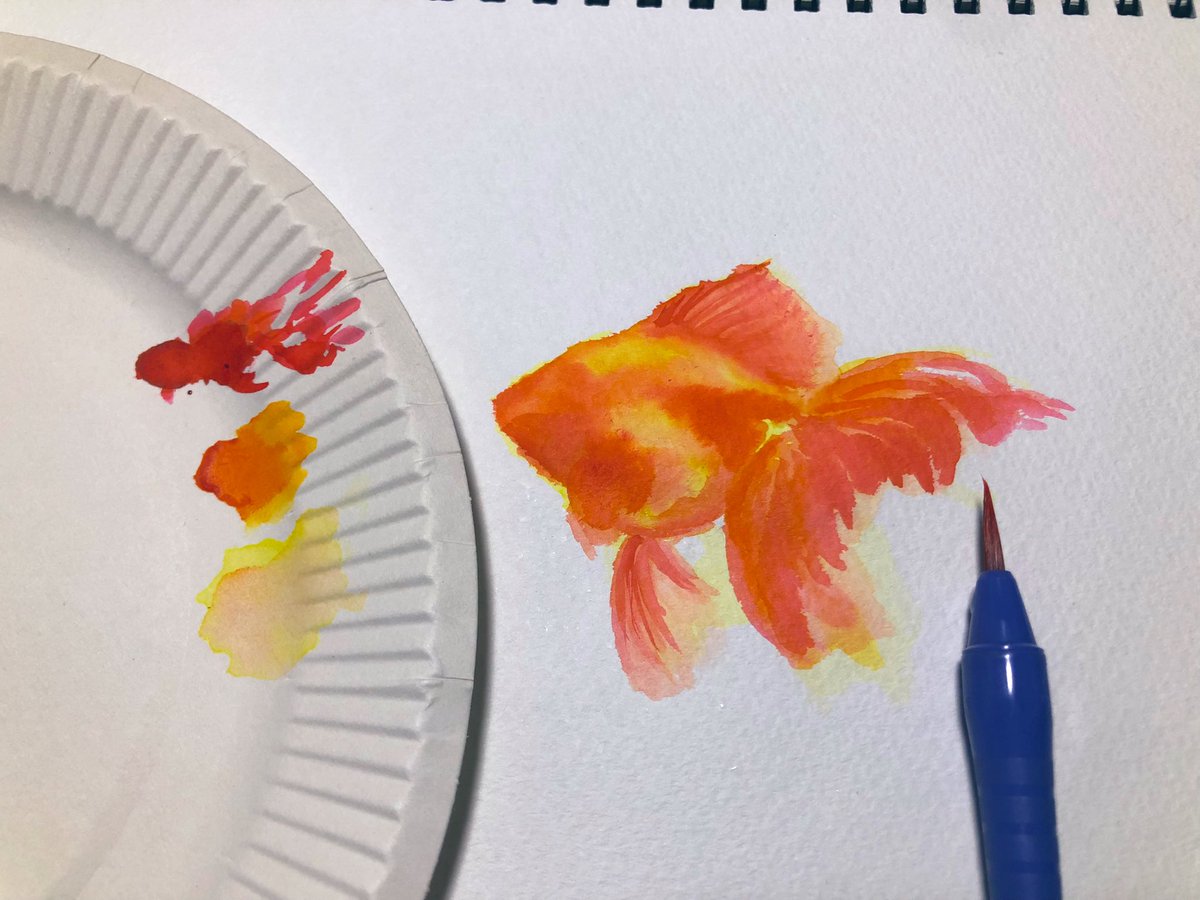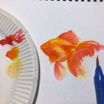 思いつきで描いてみたけど カラーインクって難しいね #イラスト #カラーインク #金魚