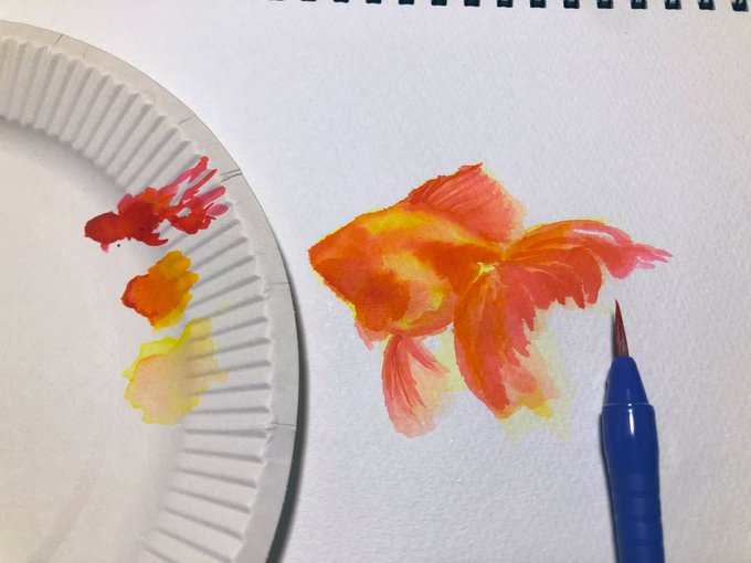 0 5 思いつきで描いてみたけど カラーインクって難しいね #イラスト #カラーインク #金魚 22/10/07 01:05