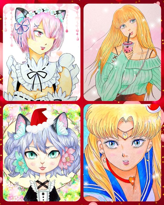 #12月になったのでフォロワーさんに自己紹介しようぜ あっとゆ~間に12月🎄•*¨*•.¸¸☆*・゚ アナログで女の子メインで お絵描きしてます✍🏻🎀🦋 オリキャラのメルモ(左下)共々 よろしくお願いします🐱🏵 #イラスト #illustration #アナログ #絵描きさんと繋がりたい #みんなで楽しむTwitter展覧会