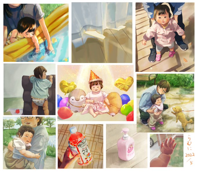 ここ数日で育児絵ばーっと描いた タッチが安定しません、、、😅 #今月描いた絵を晒そう