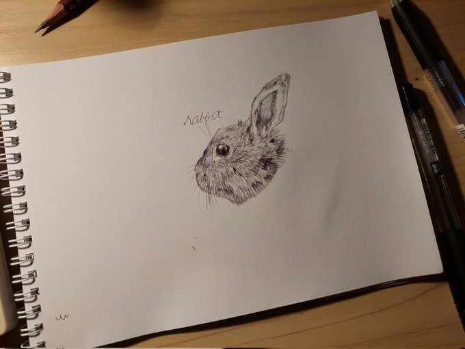 #イラスト #うさぎ ボールペンで絵描こうと思って実家のうさぎ描いてみた