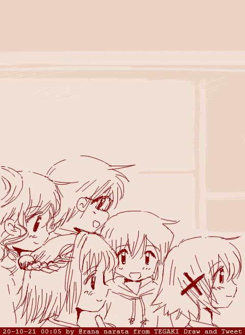 30 56 みんなで お出迎え se: knock knock! #ひだまりスケッチ #ゆの #なずな #乃莉 #沙英 #ヒロ #tegaki_dt 20/10/21 00:05