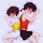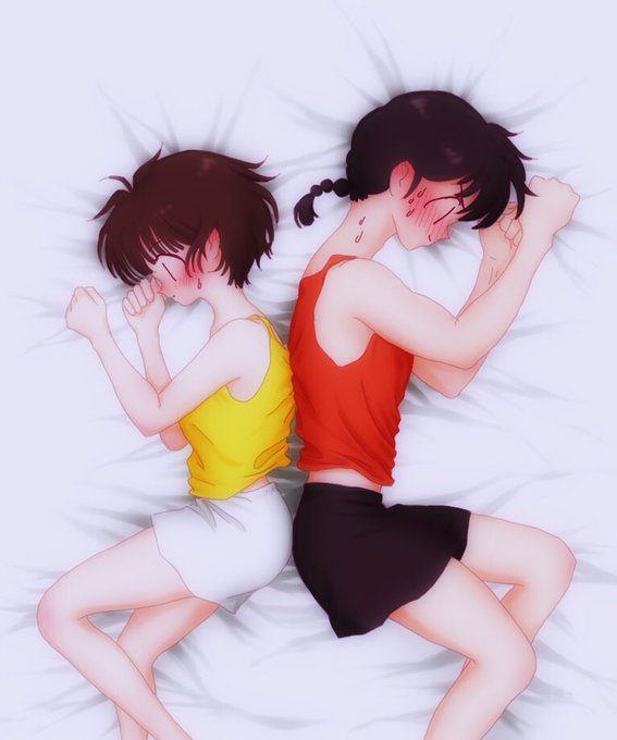 夏の夜、なんやかんやで一緒に寝ることになって最初は離れて寝てたけど乱馬が寝返り打ったらあかねと背中が当たっちゃってどきどきしてる乱あ です笑 #乱あ