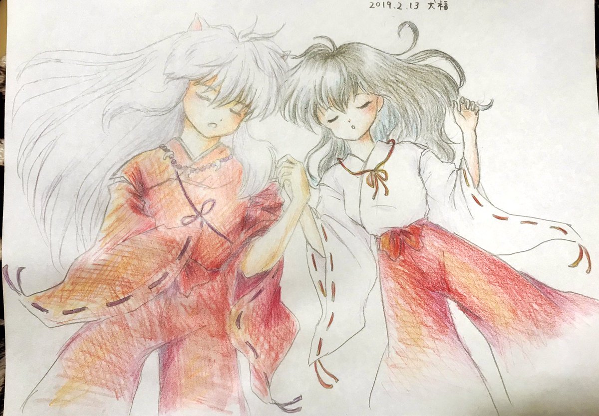 22 110 #高橋留美子5作品版深夜の真剣お絵描き60分一本勝負 @ranmawandoro お題:犬夜叉と日暮かごめ 遅刻&オーバー失礼します 0:17〜1:23 夫婦犬かご 犬夜叉の指描き忘れた 19/02/14 01:40