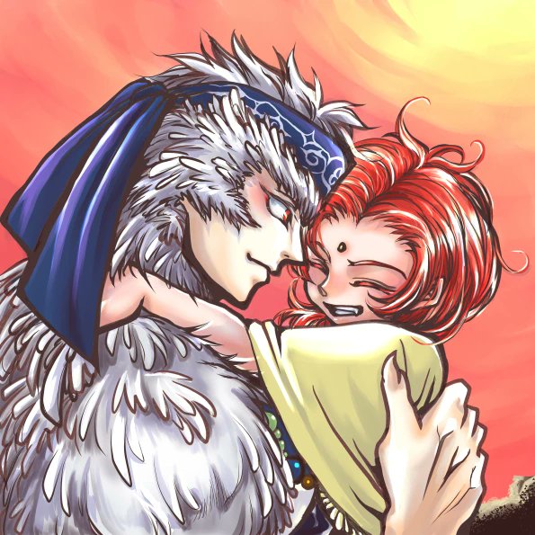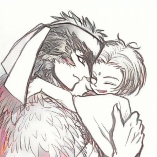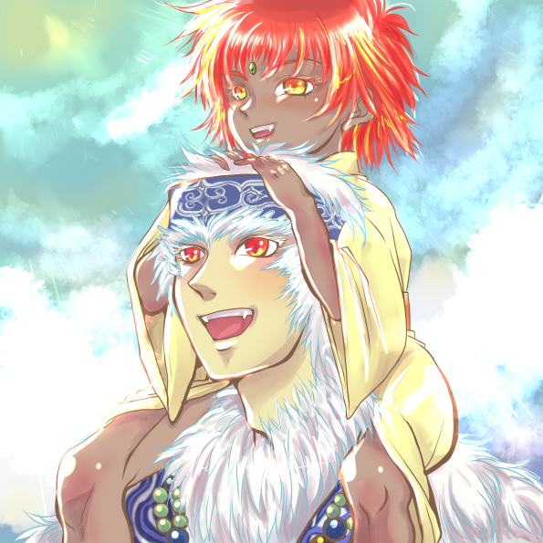 #皆さん線画と塗った後を見せてください 自動彩色でちょっと塗っちゃってるけど…。 黒曜の方はペン入れのときに線画をカラーで塗り分けるやつをやってみたかったので、髪の毛や福様のフワフワはそれぞれの色で描いてます。