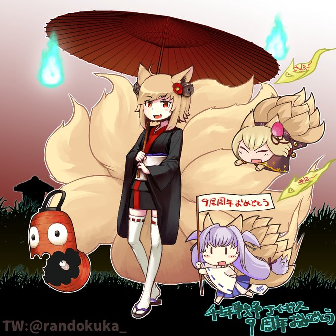 イナリ&カヨウ&キュウビ 「「「アイギス9尾周年おめでとうございます!」」」 というわけで妖狐’sの中から3人描かせていただきました 気付けばアイギスもいつの間にか9周年、これからも続いていってほしいです 次は10周年でお会いしましょう! #アイギス9周年アートコン