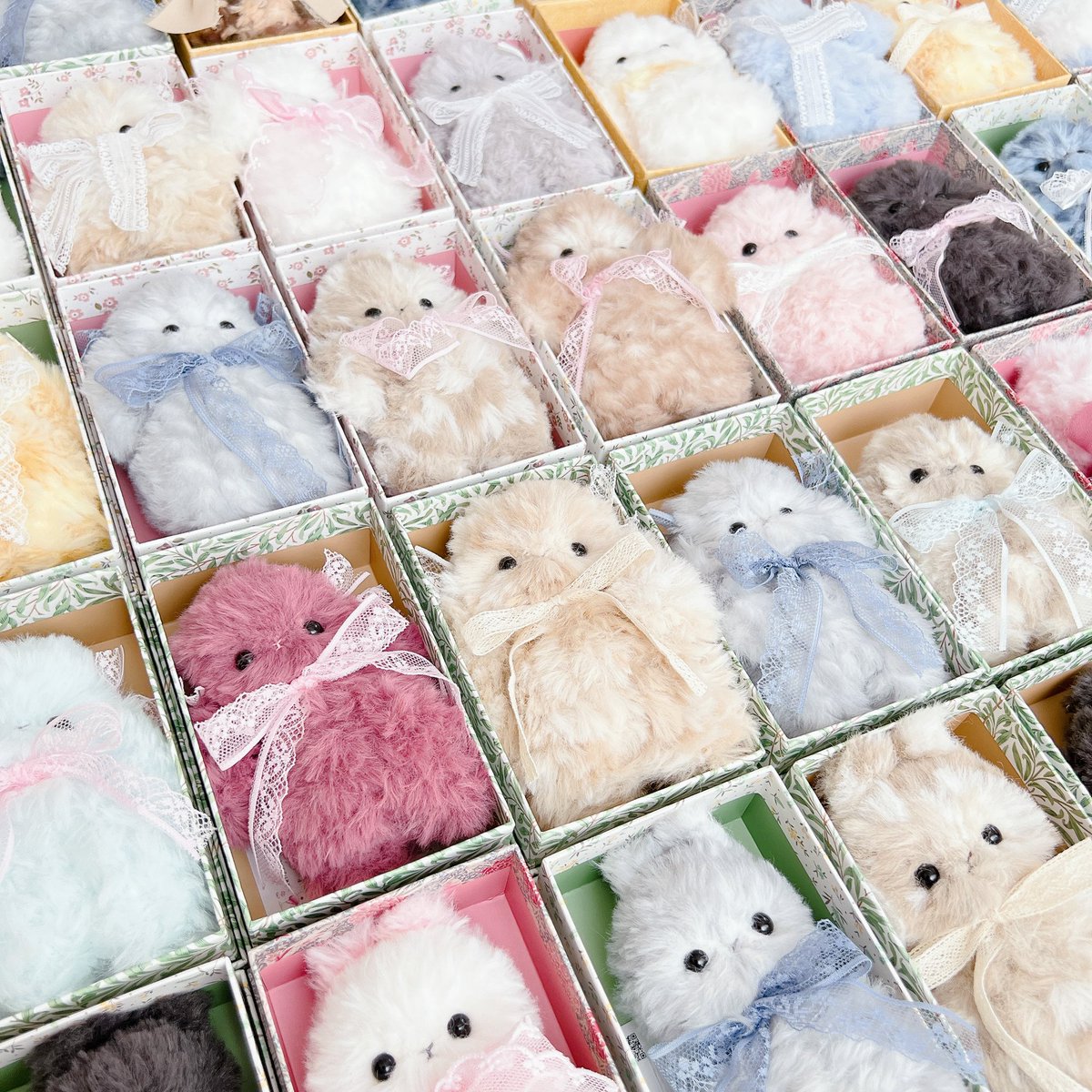 今回連れて行くふわふわうさぎちゃんたち大集合っっ!前回は3時間で半分くらいになってしまったので、今回は多めに連れていきます!✨今回も1匹3000円と手の届く価格になっています🥰💓 #あみぐるみ #デザフェス56 #デザインフェスタ56 #デザフェスお品書き
