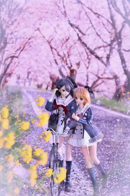 🌸桜のトンネル🌸 🌸桜ノ雨🌸 『卒業しても忘れないで... いつかまたここで逢おうね』 #ナナイロテントウ春の撮影会2023 #初音ミク #鏡音リン #うちのこかわいい #ドルフィードリーム