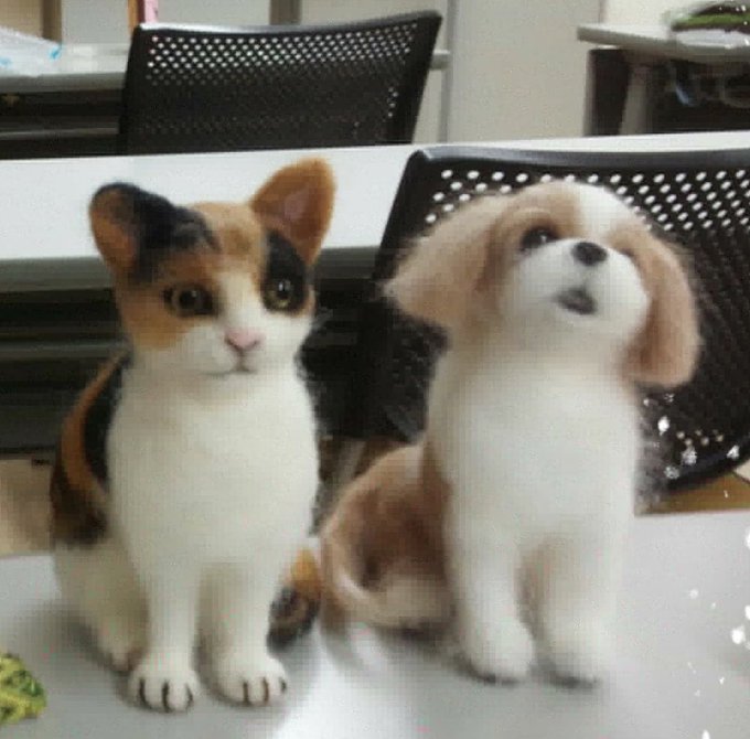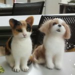 3 26 #羊毛フェルト #シーズー #三毛猫 シーズーの小さいのが手のひらサイズで、三毛猫とワンサイズ大きいシーズー。それぞれ並んでパシャリ📷✨ 20/02/17 10:31