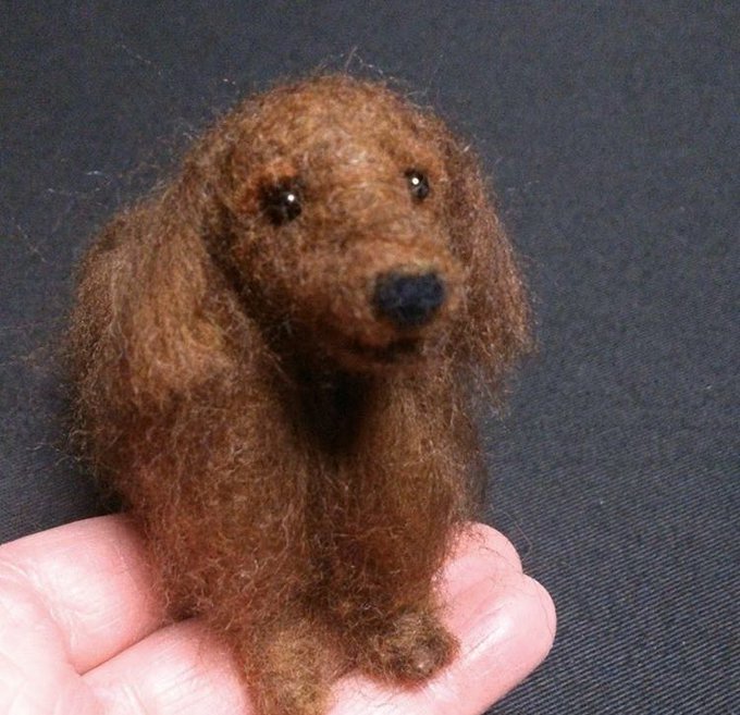 #羊毛フェルト #ミニュチュアダックス ずっと初期の作品ですが、 手のひらサイズです。