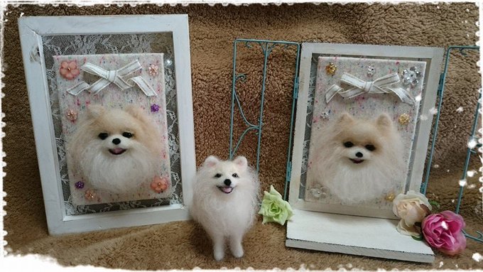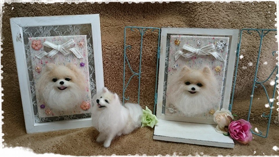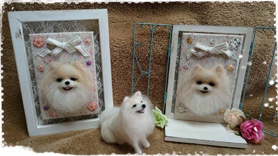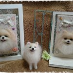 #羊毛フェルト #ポメラニアン 手のひらサイズのポメちゃんと、フレームのポメちゃん🐶 真正面と左右📷✨