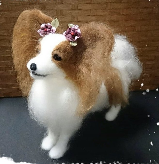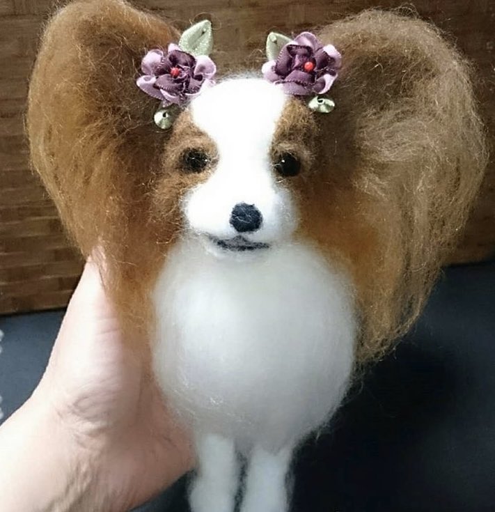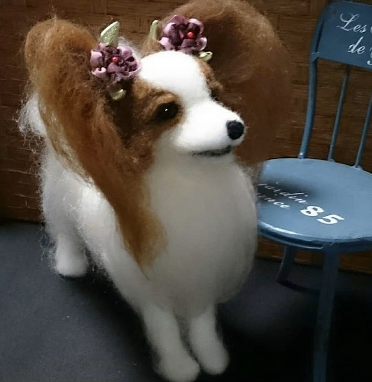 #羊毛フェルト #パピヨン 随分前に作った 大好きな犬種‥パピヨン🐶 20センチほどの子です☺️