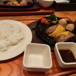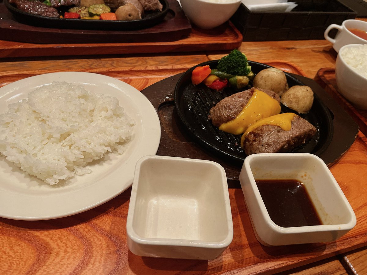 おそくほ〜 ミオリネさん!とアフターのハンバーグ🍖 可愛いスレッタと一緒だったから高いとこでもがんばれたよ…!!🥺