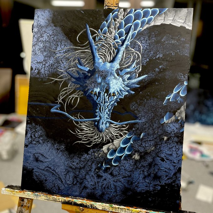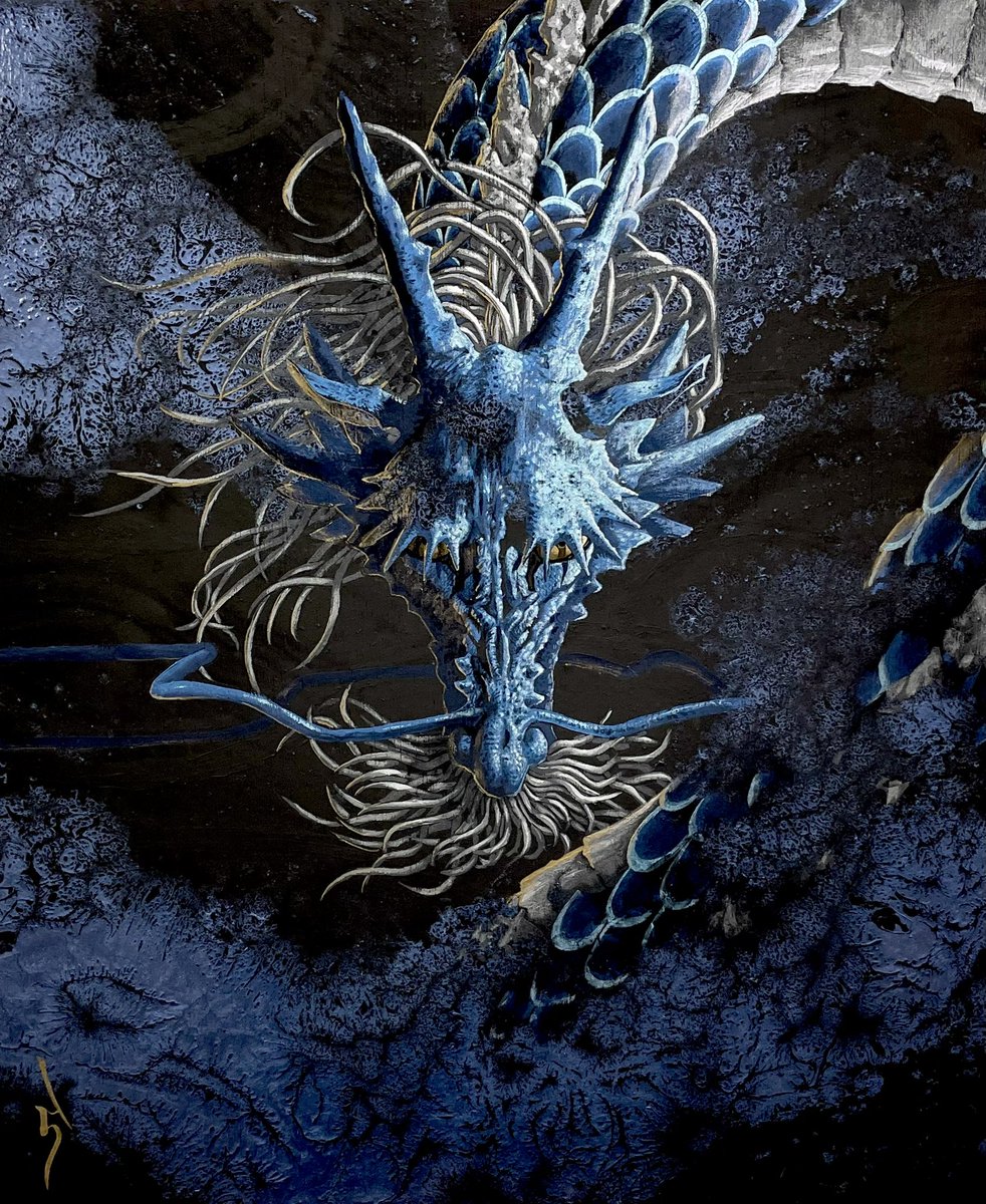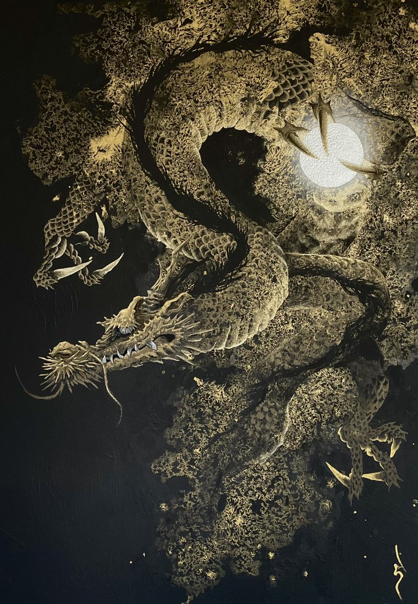 39 274 龍の絵を描きました。オーダー品。 今週末から個展が始まります。10点ほどの小さい展示ですが銀座にお越しの際はついでにお立ち寄りください。 『田中ラオウ個展〜青と金〜』 期間:3/25〜4/2 会場:銀座gallery seek 作家在廊日:4/1 , 4/2(土日) 23/03/22 18:49