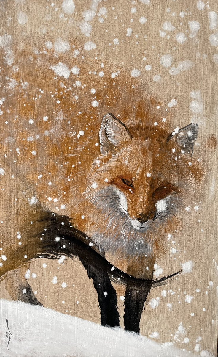 雪国の狐の絵を描きました。僕は2歳まで北海道の音更町というところに住んでてその後20歳まで岩見沢と札幌で育った。音更の記憶は全くないけどヒルナンデスで音更出身のスーパースター、滝アナウンサー(@taki_natsuki )にお会いした時は感激した。音更出身の人に一度も会ったことがなかったので。