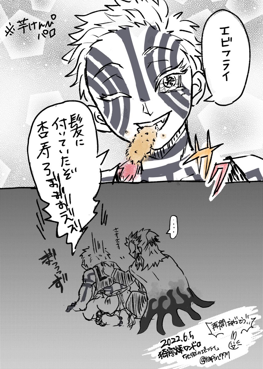 30 191 #猗窩煉ワンドロ お題▶︎地獄のエビフライ ❄️某芋けんぴマンガパロ(パロ?)🔥 ワンドロ再開おめでとうありがとう!😭🎉🙏 22/06/05 22:13