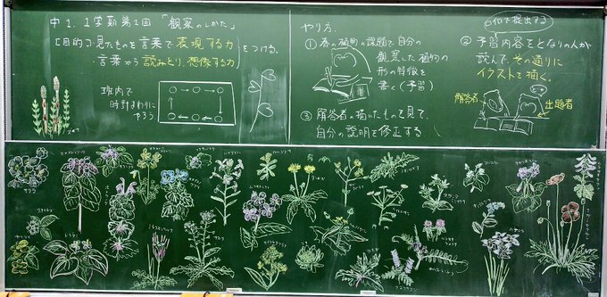 366 1767 この授業ですが、添付の画像のようにデザインしました。 ①自分たちで調べた植物の特徴を、標準和名を伏せた状態で説明文を書き ②その文章を隣の生徒が読んで、文章だけで植物の姿を復元する twitter.com/raptorial_owle… 23/04/24 18:58
