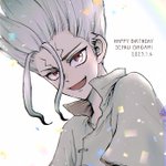 #DrSTONEコハク誕生祭2021 #コハク誕生祭2021 コハクお誕生日おめでとう!!! 強くて優しくて…すき🙏💕 お気に入りシーンは宝島で機転利かせるところ、あとルリとの姉妹愛・スイカちゃんとの絆🙏