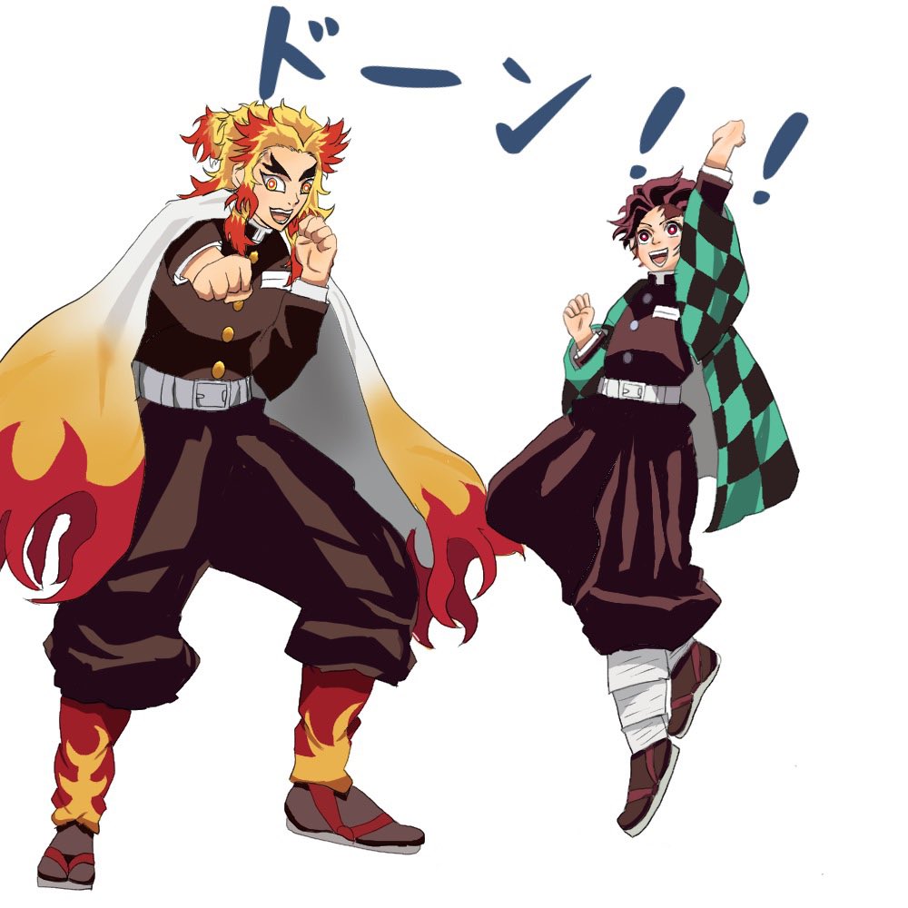 「決めポーズお願いします!」 と言われた煉獄さん🔥と炭治郎🎴 #鬼滅の刃イラスト #竈門炭治郎 #煉獄杏寿郎 #煉獄さん #炭治郎イラスト #煉獄さんイラスト
