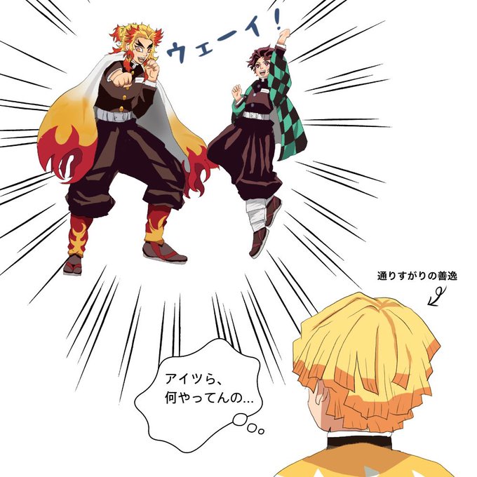 1 16 今朝のやつの続き 決めポーズしてる煉炭を目撃した善逸⚡️ #鬼滅の刃イラスト #竈門炭治郎 #煉獄さん #我妻善逸 21/06/02 21:12