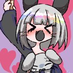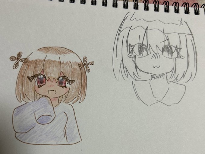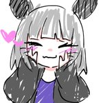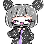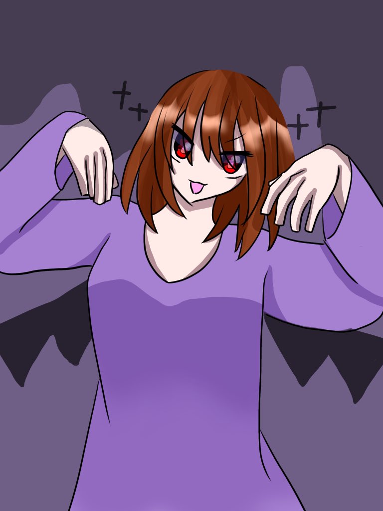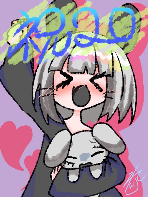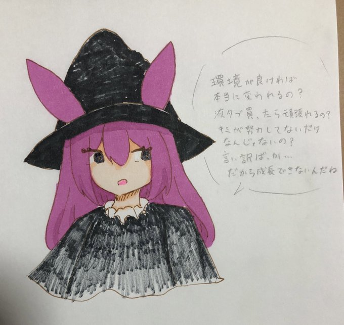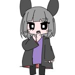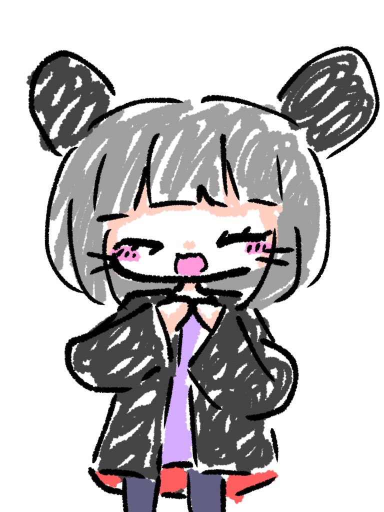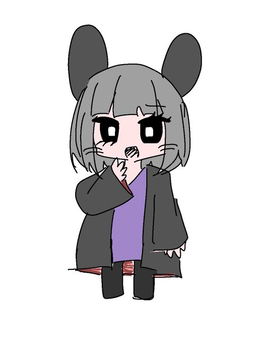 #れーりさんの情緒不安定なイラスト れいりの参考資料です(適当) 前髪ぱっつんで瞳孔白 耳は髪よりも少し濃いめの色だと嬉しい 口も黒いと嬉しい 黒い上着は内側が濃いめの赤になってます まつ毛はまあ見ての通り 中に着てる服は紫💜 ということでぜひ描いて‼️