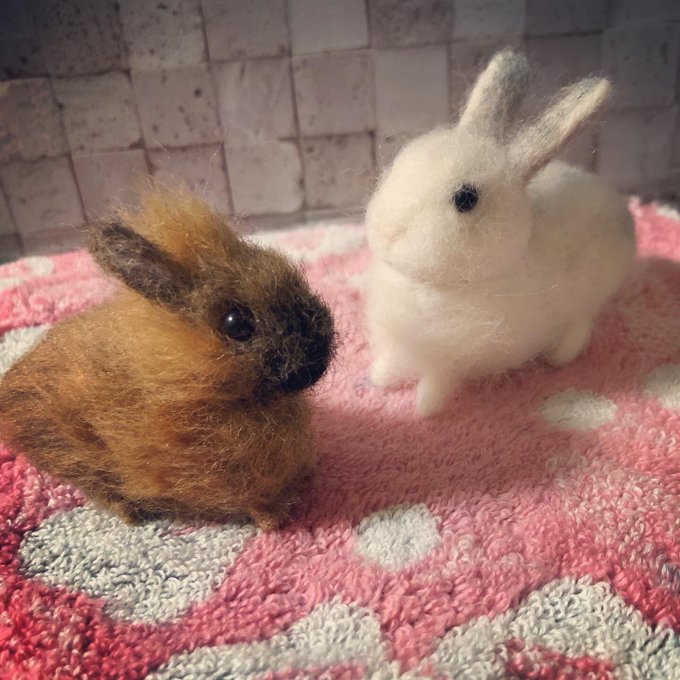 ちんまりウサ子とちんまりハム子の里親さんが来ましました🥰 ありがとうございます😭 今日もチクチクハムスター🐹 楽しく作りたい子達を作ってます😚 良かったらminneも覗いてみてください。里親募集中☺️ #キンクマ #羊毛フェルト #気が向かない時はブスができる #minne