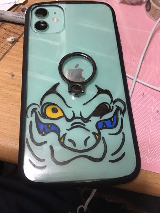 1 6 スマホの色がウツボっぽかったので描いてみた プラ板に描いて中に挟んでおります 20/06/02 00:39