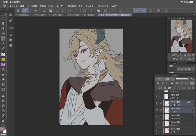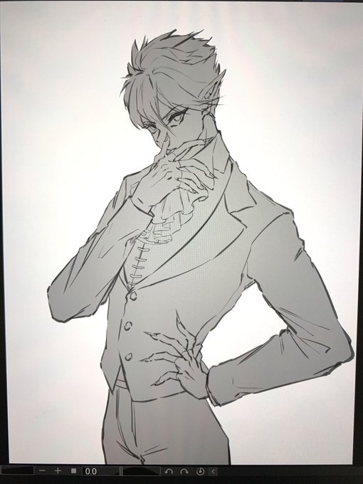 1 24 カーヴェ描いてる〜 アルハイゼンの誕生日絵は描き終わってるので当日投稿します🙏 23/02/06 20:47